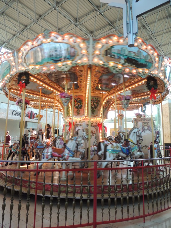 My daughter lost her phone so we trekked out to the mall. The door that we entered has this resplendent vision of light and motion! A small girl was riding with a floofy skirt and an adult standing by her horse. She looked delighted.