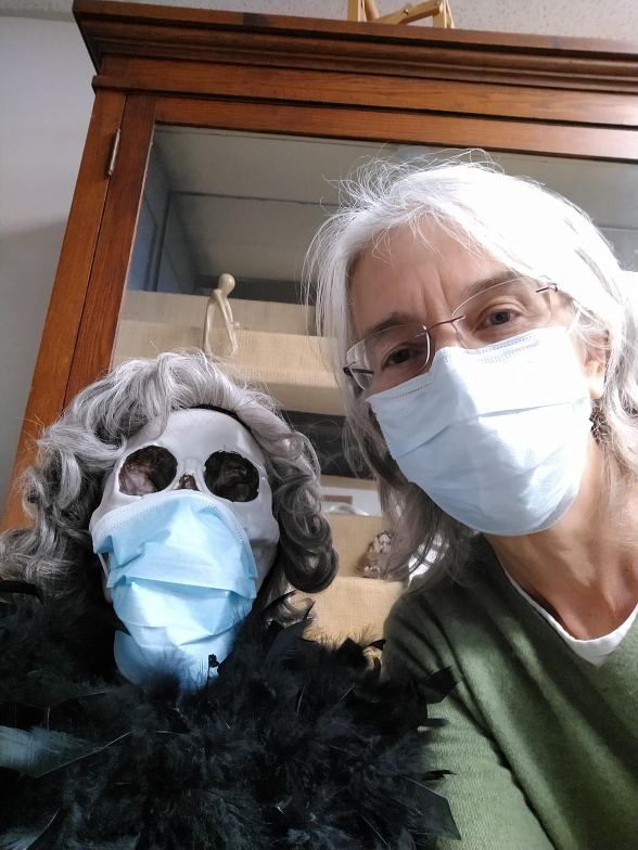I took the photograph at Quimper Family Medicine, the clinic I opened after the hospital clinic kicked me out. The skeleton was named Mordechai in a contest. This is from 2014. Mordechai lived in our waiting room every October, with different outfits.