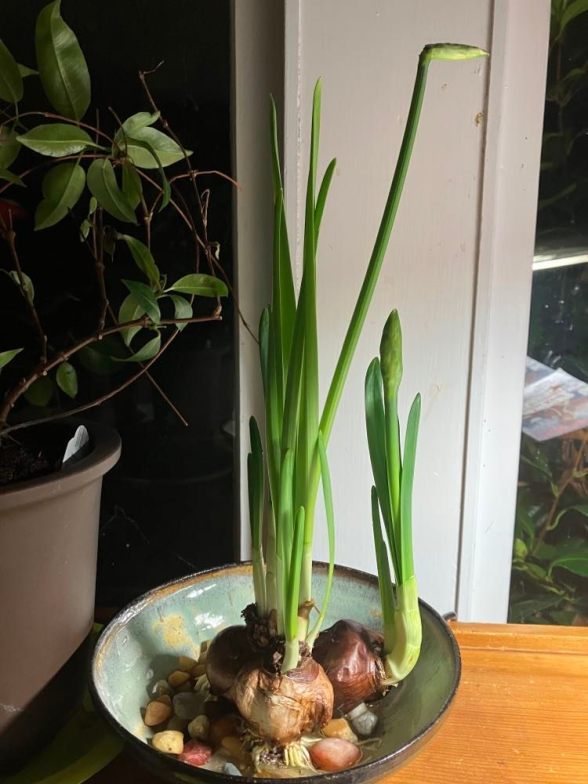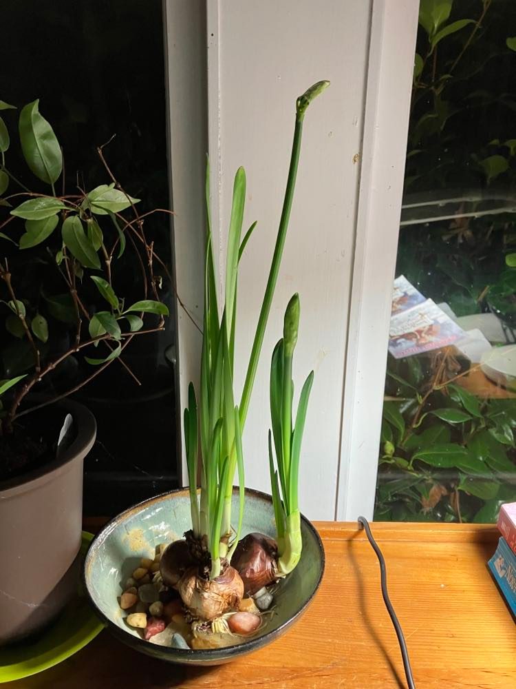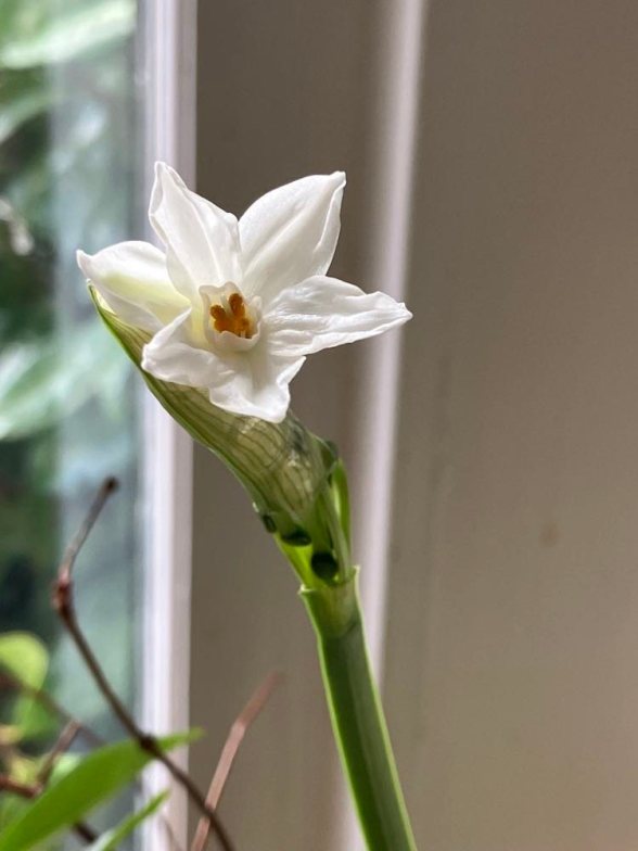 My paperwhite opened yesterday! Just the tip of the first bloom!