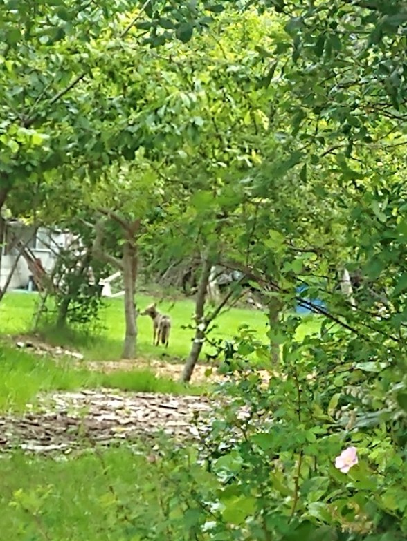 I took the photograph of the coyote yesterday, driving home. Stopped dead in my lane, no one else on the road. People will be stopped in the road here, talking to each other in two cars going opposite directions, or talking to a friend on foot.
