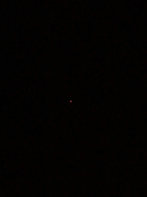 Taken with my cell phone out the window last night: a super blood wolf moon marble in the sky, at the height of the eclipse.