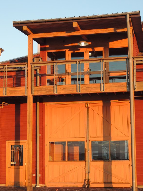 For Norm2.0’s Thursday doors: The lovely carved door for the Wooden Boat Foundation in the early morning, lit by the sun.